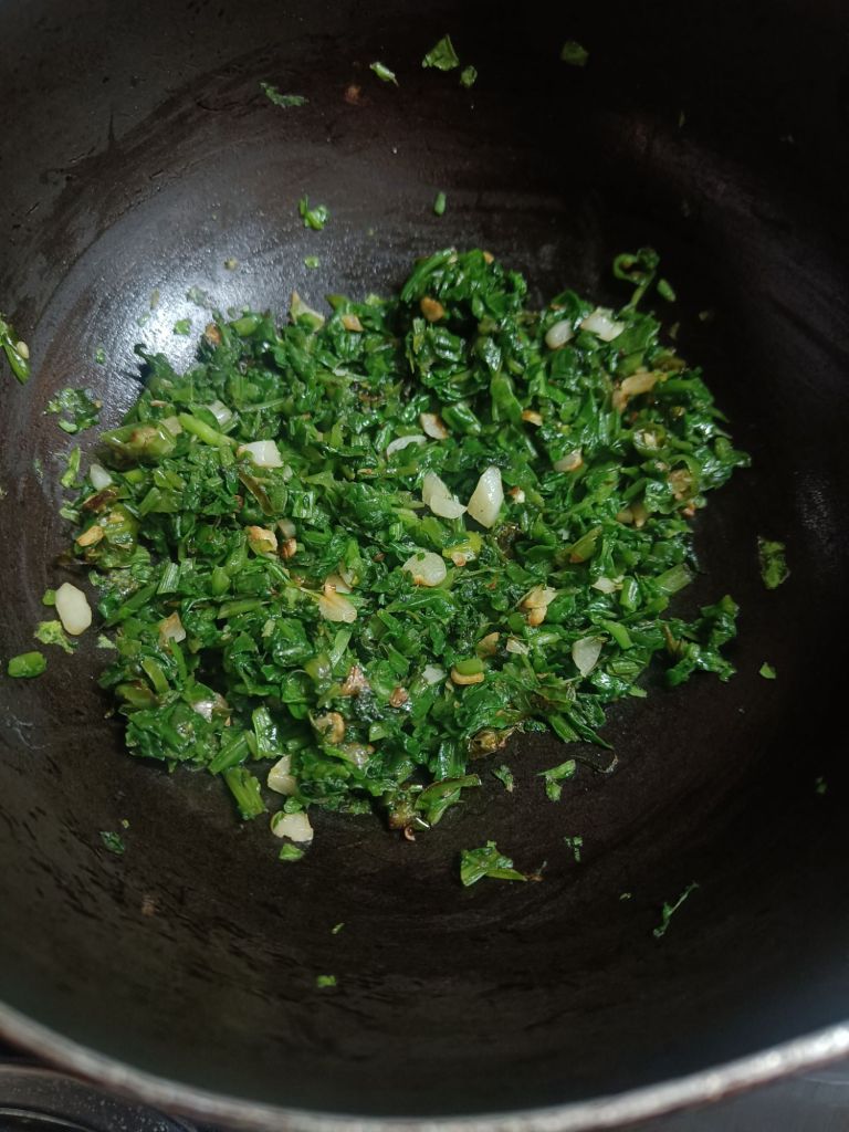 - Now, add finely chopped Spinach & cook again for 2 minutes.