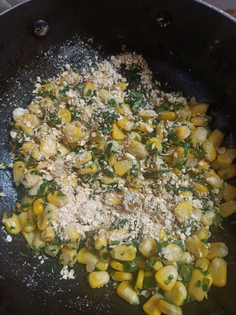 - Then add boiled Sweet Corn and cook for another 1 min.