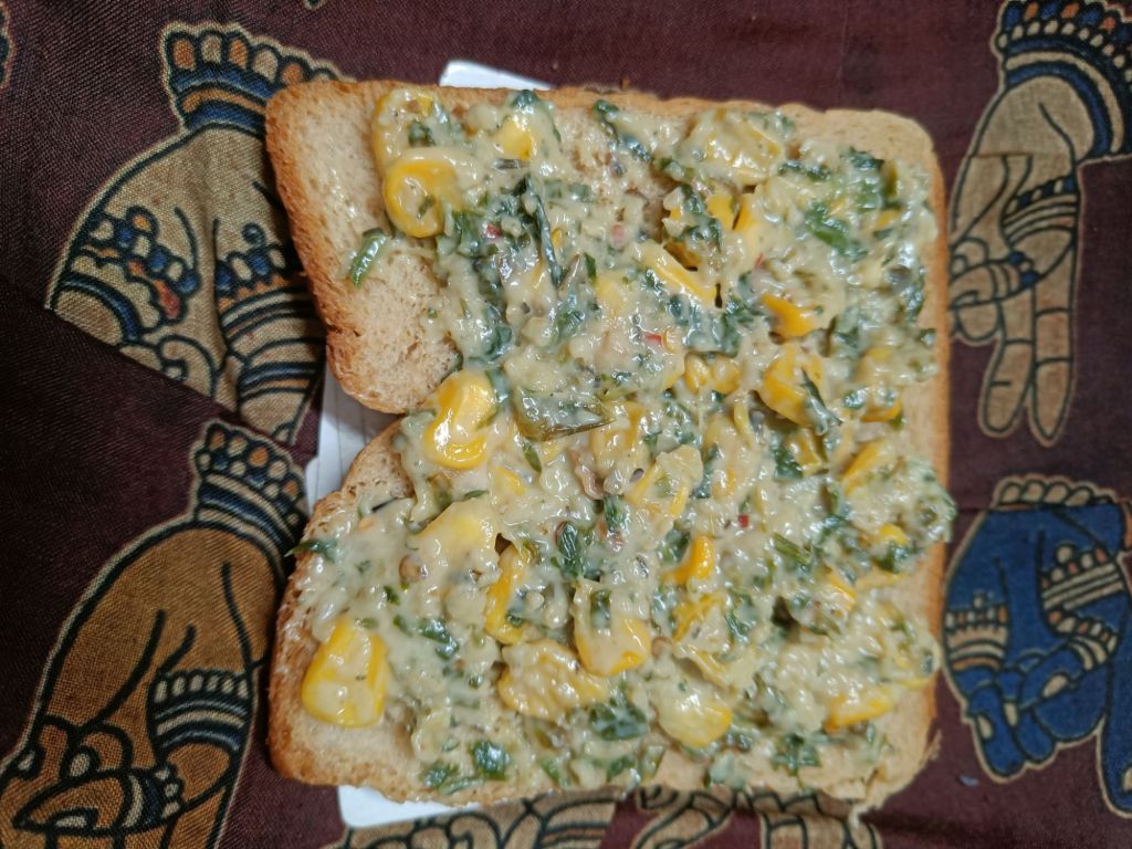- If making sandwich,spread some pizza Sauce on one slice of bread and then spread this Spinach & Corn filling.
